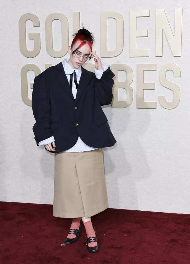 81回ゴールデン・グローブ賞授賞式でウィリー・チャバリアを身にまとったビリー・アイリッシュ。(ロサンゼルス、202417日)