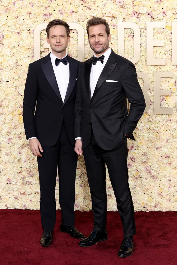 パトリック・J・アダムスは、ジョルジオ・アルマーニ、ガブリエル・マクトはブルネッロ・クチネリを身にまとって第81回ゴールデン・グローブ賞授賞式に出席した。
