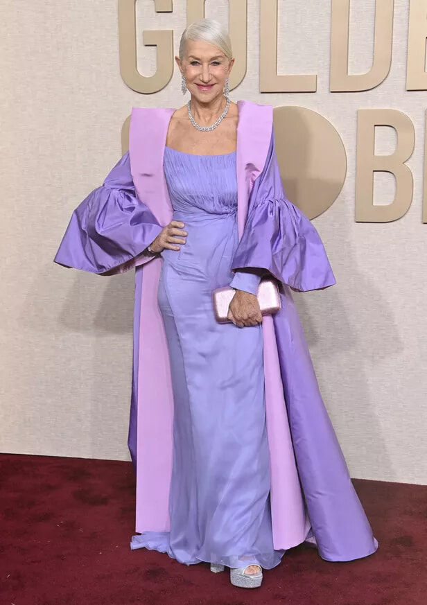81回ゴールデン・グローブ賞授賞式にて、ドルチェ&ガッバーナのドレスを身に纏ったヘレン・ミレン。(ロサンゼルス、202417日)