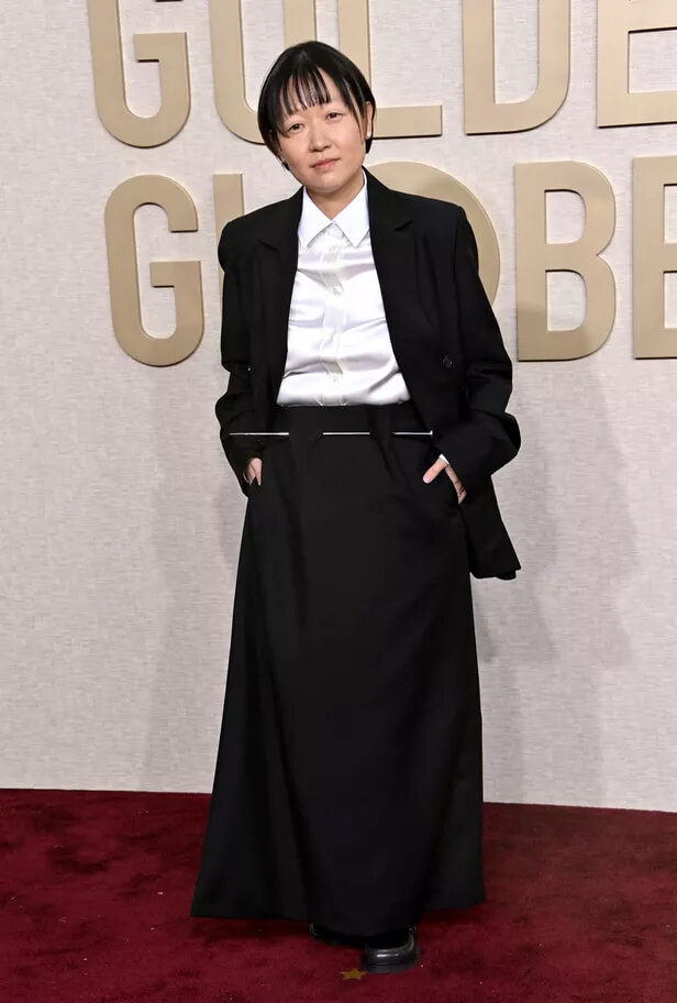 81回ゴールデン・グローブ賞授賞式にて、ロエベを身に纏ったセリーヌ・ソング。(ロサンゼルス、202417日)