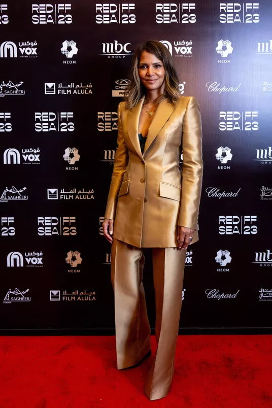 紅海映画祭にゴールドのスーツで登場したハル・ベリー。(ジェッダ、2023127日)photography: Balkis Press / Balkis Press/ABACA