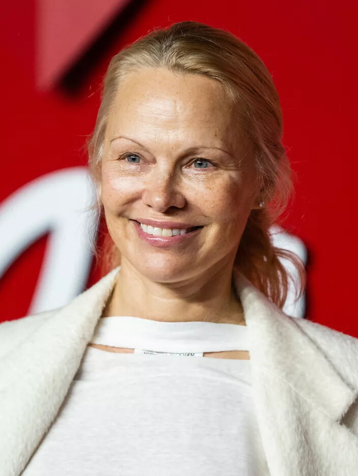 ロンドンで開催されたブリティッシュ・ファッション・アワード2023に登場したすっぴんのパメラ・アンダーソン。(2023年12月4日)