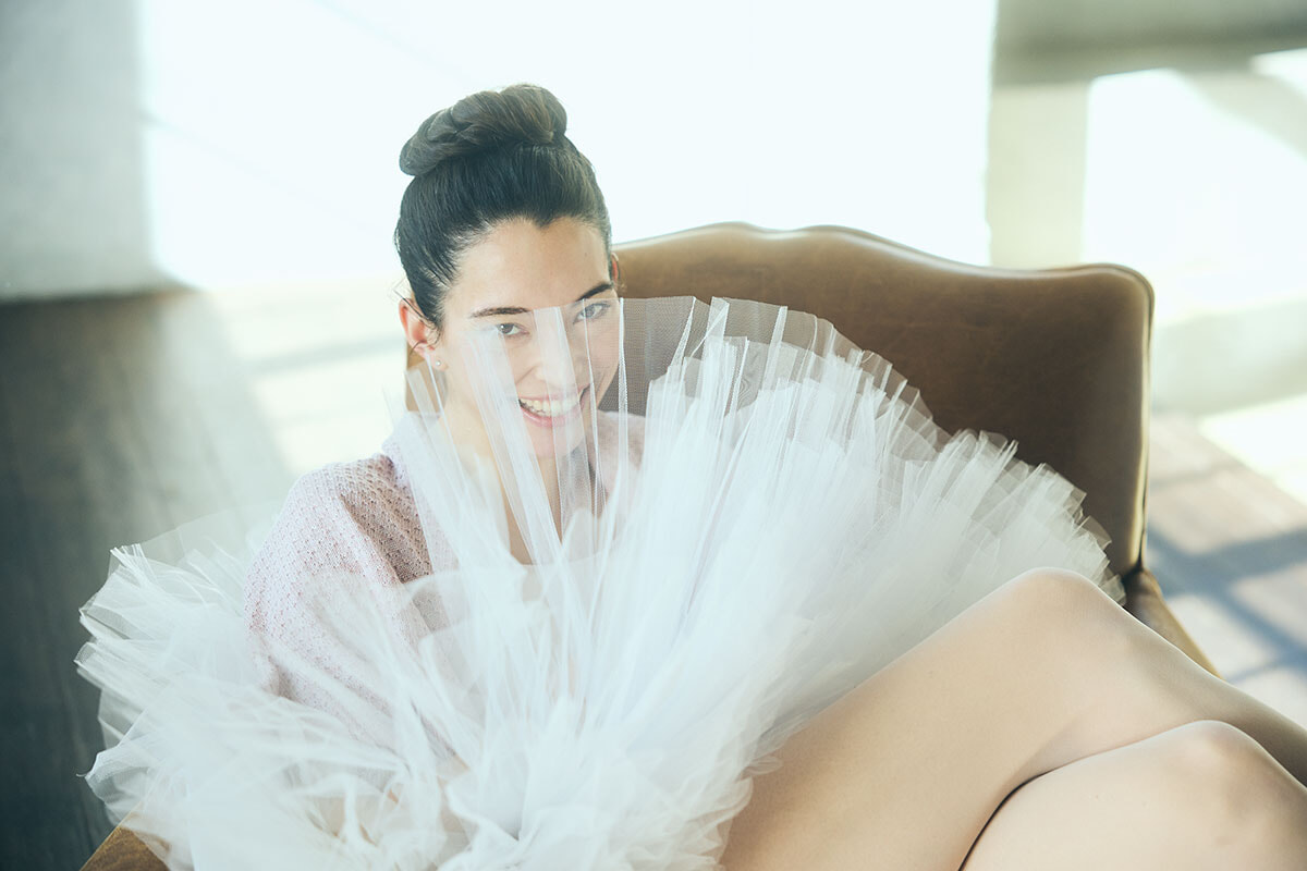 「このお話がきた時、まだコリフェの私に?ってすごくうれしかった。チャコットのウエアはどれも素材がよくて、作りもしっかりしています。洗濯を繰り返しても、色あせず、ほつれず長持ちします。着心地もとてもいいし……。レッスンでは汗をかくので、その時にほかのブランドと違うチャコットの良さがよくわかります。だから、今回のコラボレーションでもこうした点は最初から安心がありました。チャコットはダンス界だけでなく、代官山の新しいブティックに行くとわかるように、ほかの分野にも世界を広げていますね。メイク用品も品揃えが豊富で、私のいちばんのお気に入りはつけまつ毛!繰り返し使っても長持ちするクオリティで、日本に行くとたくさん買い込んでいるんです」