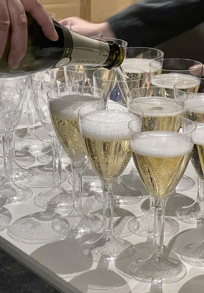 「そこで誕生したのが、メゾンのスタイルの一貫性に加えて、年ごとの個性と、土壌などブドウの生育環境を表現した『マルチヴィンテージ』のシャンパーニュです。ルイ・ロデレールでは2021年に、ノンヴィンテージからマルチヴィンテージの「コレクション」にフルモデルチェンジしました。数字はルイ・ロデレールの創業から何回目の収穫かということを表しています。いまお飲みいただいている『コレクション244』は244回目の収穫となったということですね。 17~18世紀から脈々と歴史を受け継ぐシャンパーニュですが、その中身は大きく進化しています。映画とともにシャンパーニュのいまと昔にも、ぜひ想いを馳せてみてください」