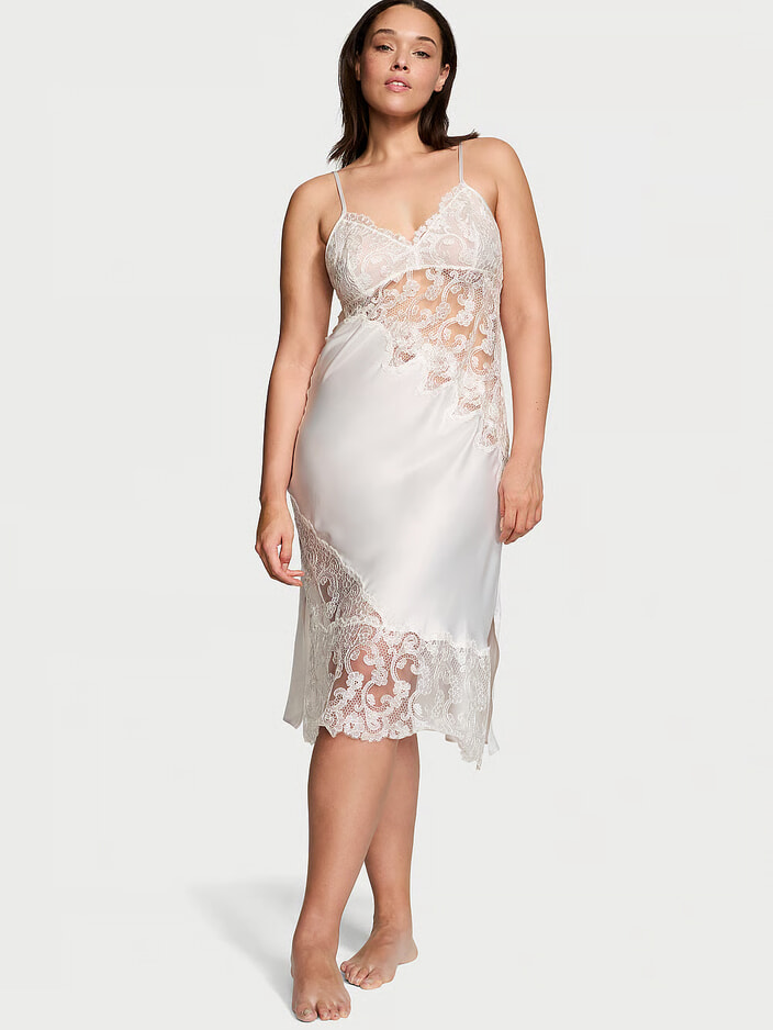 ボヘミアンスタイルの刺繍入り花柄サテンミディアムロングナイトドレス、ヴィクトリアズ・シークレット、148.34 ユーロ(約24000円)。victoriassecret.comで購入可能。
