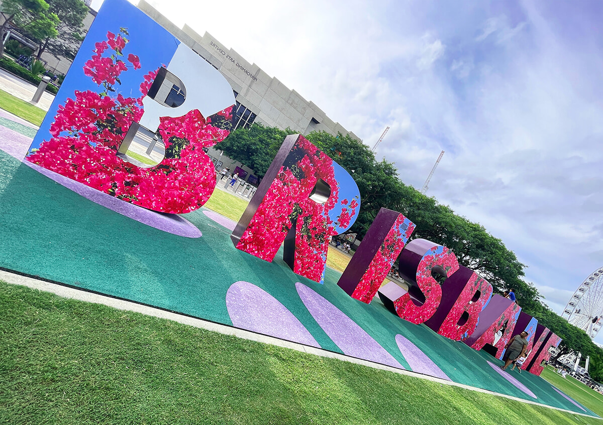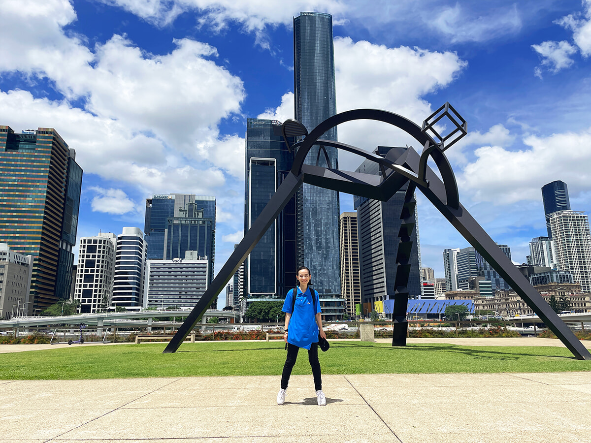 そんな私はインスピレーションそしてリサーチを兼ねて、オーストラリアへ。足を運んだのは街並みも一望でき公園もありとてもにぎやかなブリスベン市内サウス・バンクの川沿いエリア。ここはギャラリーや図書館などさまざまな文化機関が集まっていて、アーティストのダイナミックなモニュメントも楽しめました。