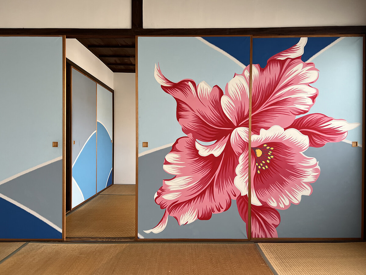「SELECT BEPPU」2階の「マイケル・リン」ふすま絵鑑賞エリア。別府現代芸術フェスティバル2009「温浴世界温泉」への出品作。会期を終えても継続的に公開されている。