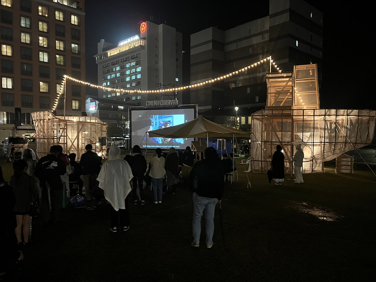 栗林隆の「Tanker Project」。写真は4月6日夜に行われたライブイベント「Play with the Earth」の様子。志津野雷とPlay with the Earth Orchestraが出演し、雨が混じる中、大勢の観客で盛り上がった。