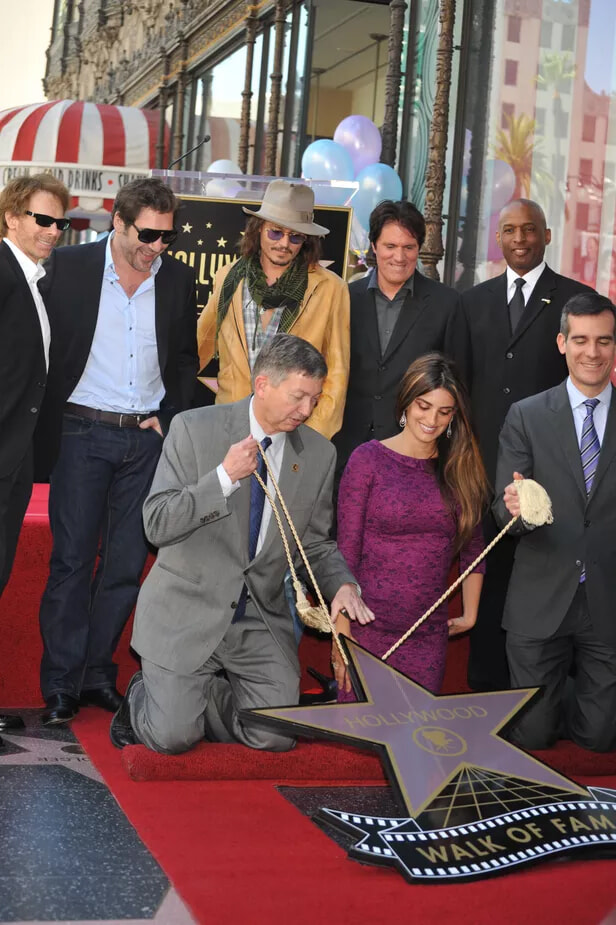 ジョニー・デップ、ハビエル・バルデム、ロブ・マーシャル、ペネロペ・クルス。(ハリウッド、2011年4月1日)