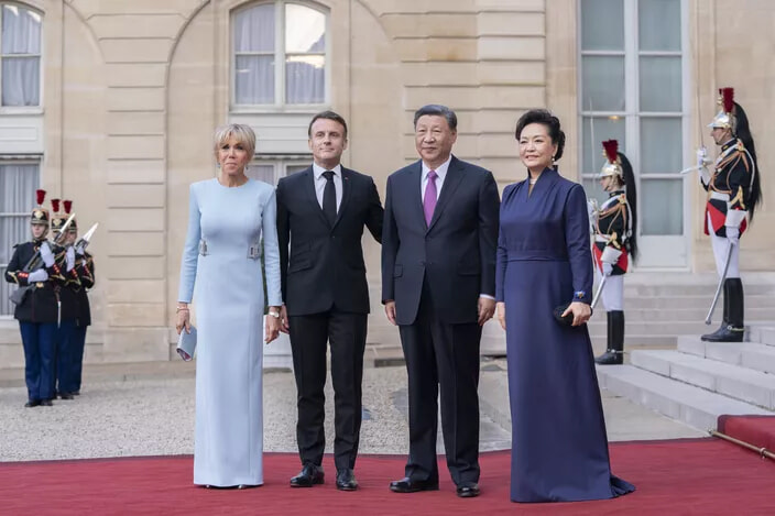エマニュエル・マクロン仏大統領とブリジット・マクロン夫人、習近平国家主席と彭麗媛夫人。