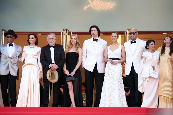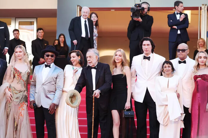 ジョン・ヴォイト、D・B・スウィーニー、グレース・ヴァンダーウォール、ジャンカルロ・エスポジート、オーブリー・プラザ、フランシス・フォード・コッポラ、ロミー・マーズ、アダム・ドライバー、キャサリン・ハンター、ローレンス・フィッシュバーン、そして、クロエ・ファインマン。(カンヌ、2024年5月16日)