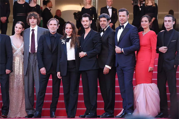 大階段9日目の5月22日は『Le Comte de Monte-Cristo(モンテ・クリスト伯)』の上映があった。出演者のピエール・ニネ、アナイス・ドゥムースティエ、ローラン・ラフィットは監督のアレクサンドル・ド・ラ・パトリエール&マチュー・デラポルトとともにレッドカーペットへ。