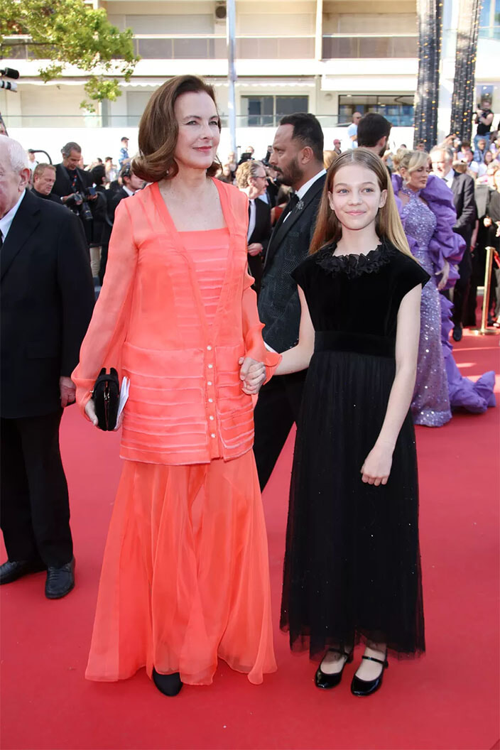 カンヌのレッドカーペットに登場したキャロル・ブーケと彼女の孫娘のダーシャ。(2024年5月22日、カンヌ)