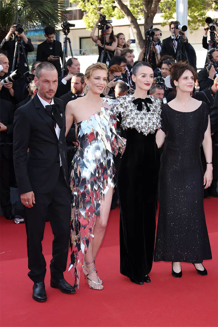 マチュー・デラポルト、アナイス・ドゥムースティエ、ピエール・ニネ、ピエルフランチェスコ・ファヴィーノ(2024年5月22日、カンヌ)