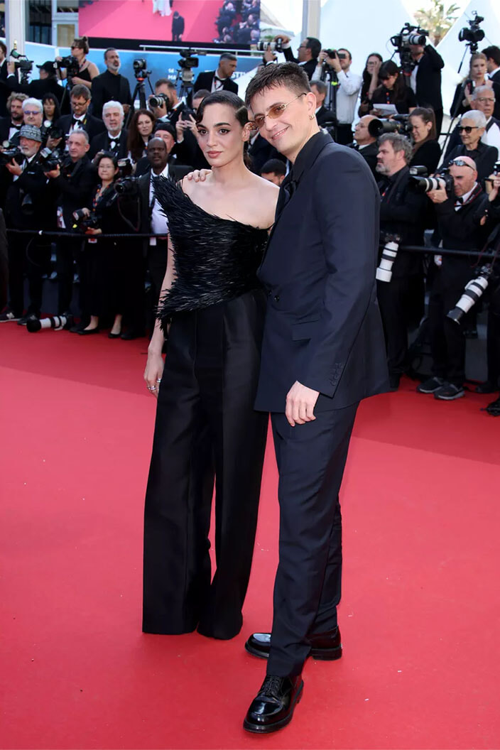 数分後、ピエール・ニネは共演者のローラン・ラフィットや、メルセデス役のアナイス・ドゥムースティエらの元へ。アナイス・ドゥムースティエは黒のタキシードにボウタイ姿がとてもチャーミング。対照的な白いスーツ姿だったのが『モンテ・クリスト伯』のプロデューサー、ディミトリ・ラッサムだ。キャロル・ブーケが階段を上がって彼らと一緒に上映会に参加したのも、彼女がディミトリの母親だから。キャロル・ブーケは孫娘のダーシャを連れていた。ディミトリ・ラッサムとロシア人モデル、マーシャ・ノヴォセロヴァの子どもだ。ディミトリは最近、モナコ公国のシャルロット・カシラギと別れたばかりで、シャルロットとの間には2018年に生まれた息子、バルタザールがいる。この夜は他にも、ラファエル・クナール、ジャリル・レスペールがレッドカーペットに登場した。一方セリ―ヌ・サレットはキラキラ光るミラードレスを纏い、初監督作品である『Niki(ニキ)』の出演者、シャネルのドレス姿のシャルロット・ルボンやジュディット・シュムラと連れ立ってやってきた。『ニキ』はアーティスト、ニキ・ド・サンファルの伝記映画だ。