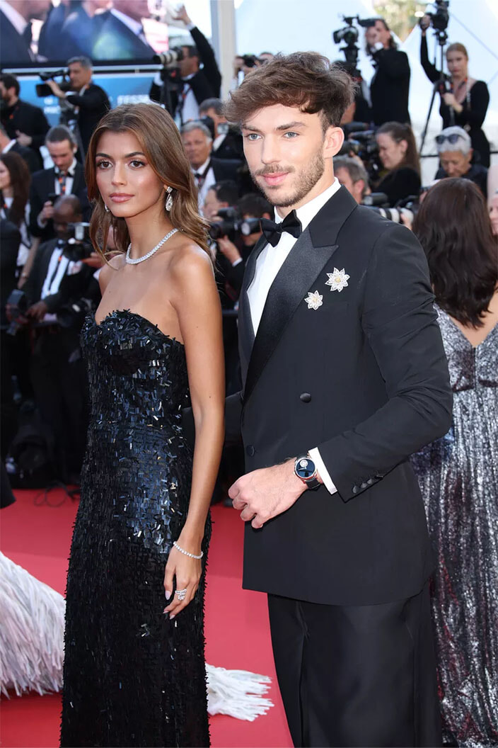 フランス人レーサーのピエール・ガスリーとそのパートナーのフランシスカ・ゴメス。(2024年5月22日、カンヌ)