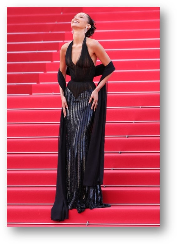 これに先立ち、レッドカーペットはテニス選手で埋めつくされた。この晩上映されたドキュメンタリー映画『Nasty- More Than Just Tennis(ナスティ)』にはアンリ・ルコントやボリス・ベッカーも登場する。レッドカーペットにはブラジルのサッカー選手ライーも顔を見せ、大階段はスポーツ色に染まった。その後、俳優サミュエル・ル・ビアン、そしてヴェルサーチェのドレスを着たベラ・ハディッドが登場して注目を集めた。トップモデルはニコニコしながら観客に向かって手でハートの形を作り、投げキッスをした。