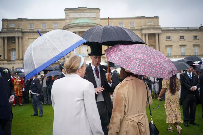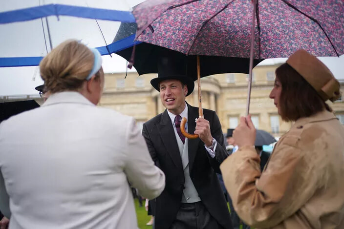 王位継承者であるウィリアム皇太子が5月21日、王宮で今シーズン初のガーデンパーティを開催した。妻のキャサリン皇太子妃の欠席と、傘を差さなければならないほどの雨に見舞われたレセプションだった。