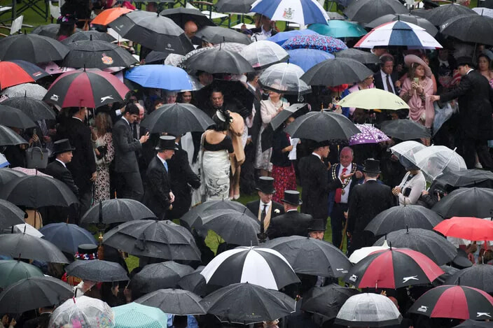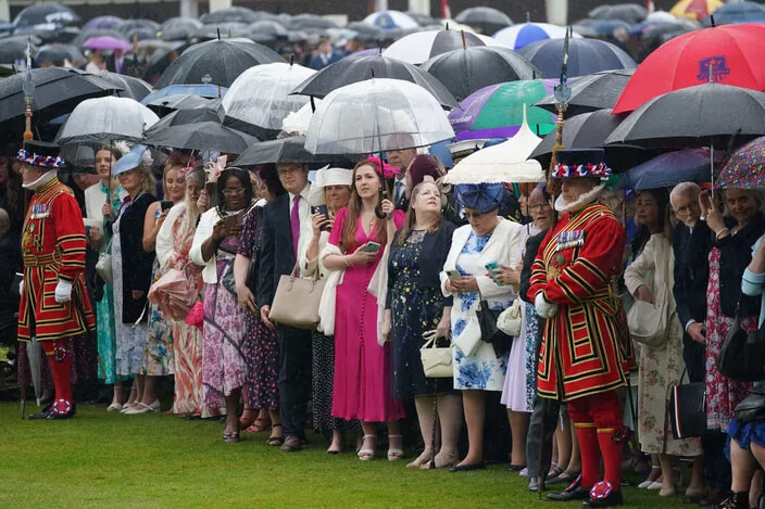 憂鬱な天気の中で開かれたガーデンパーティ。(ロンドン、2024年5月21日)