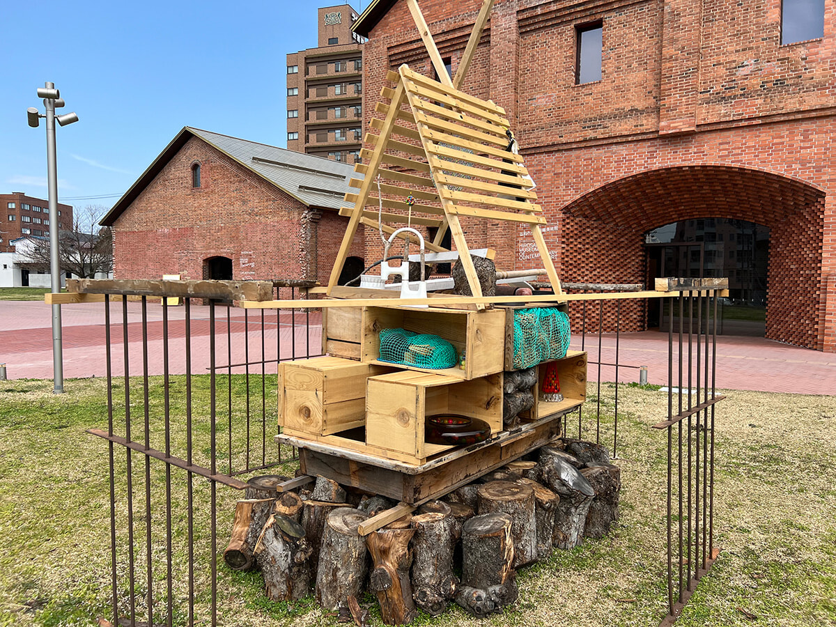 白神山地をテーマにした「弘前エクスチェンジ#06『白神覗見考(しらかみのぞきみこう)』」も見ておきたいプロジェクトのひとつ。狩野は白神山地が世界自然遺産となったことで人や動物にどんな変化が生まれたのかをリサーチし、津軽のりんご畑で伐採した老木や改修前の美術館に残されていたパーツなどを用いて立体作品を制作している。屋外にも展開する狩野の作品は、レトロな中央弘前駅構内の「ギャラリーまんなか」でも公開中だ。ほか、カフェやゲストハウスを併設した複合施設「HIROSAKI ORANDO」でも展示。美術館のすぐ近くなので足を延ばしたい。