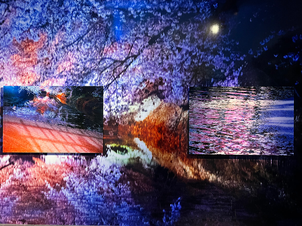 「蜷川実花展 with EiM:儚(はかな)くも煌(きら)めく境界 Where Humanity Meets Nature」展示風景より、「弘前の春」。弘前公園の桜の写真で構成された展示。蜷川は弘前を訪ねる年や天候の違いだけでなく、数日の短い間にも刻一刻と変化する桜の一瞬の姿を写真で掴み取っている。