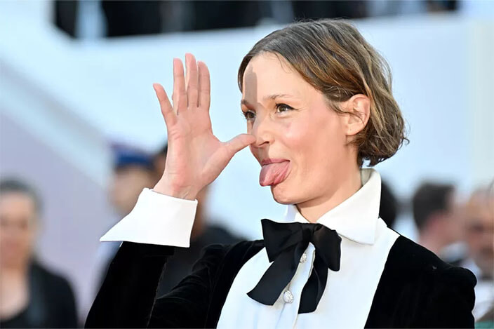 5月18日の『エミリア・ペレス』上映でスタンディングオベーションを受けたジャック・オーディアール監督は、タイトルロールを演じたスペイン女優、カルラ・ソフィア・ガスコンと共に現れた。続いてコンペティション部門に出品された『Anora(アノーラ)』のショーン・ベイカー監督とそのチームがやってきた。デミ・ムーアは中途半端なことが嫌いな性格らしく、巨大なリボンのついたドレスで登場した。