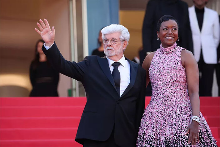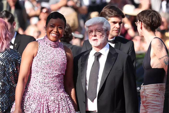 ジョージ・ルーカスとメロディ・ホブソン。(カンヌ、2024年5月25日)