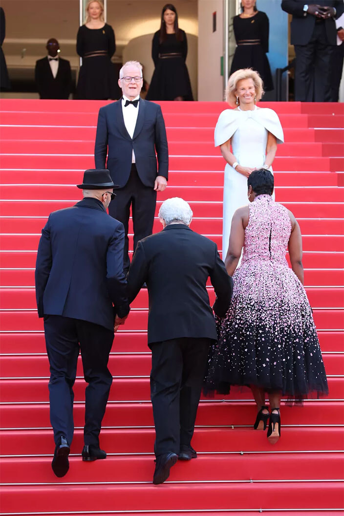 最後に審査員たちが階段を上がった。今日も審査委員長のグレタ・ガーウィグはフランスのセザール賞俳優オマール・シーと並んで登場。オマール・シーがふざけて軽くステップを踏むかたわらで、エヴァ・グリーンはグラマラスなスパンコールドレスでボンドガールのようなルックを披露していた。
