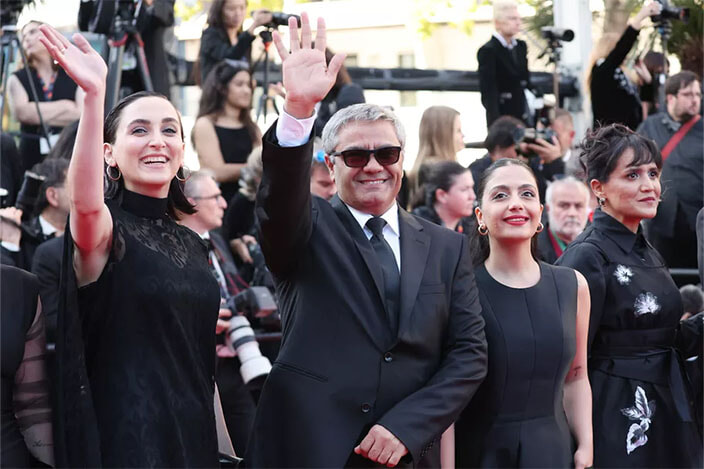 マーサ・ロスタミ、モハマド・ラスロフ、セタレ・マレキ、アミネ・アラニ。(カンヌ、2024年5月25日)