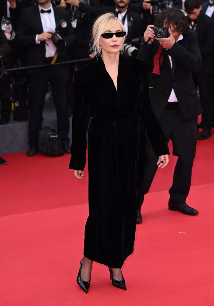 第77回カンヌ国際映画祭のレッドカーペットにサンローランのドレスで登場したエマニュエル・ベアール。(カンヌ、2024年5月15日)