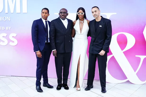 『NAOMI: In Fashion』展のオープニングに登場したハッサン・ピエール、エドワード・エニンフル、ナオミ・キャンベル、モハメド・アル・トゥルキ。(ロンドン、2024年6月19日)