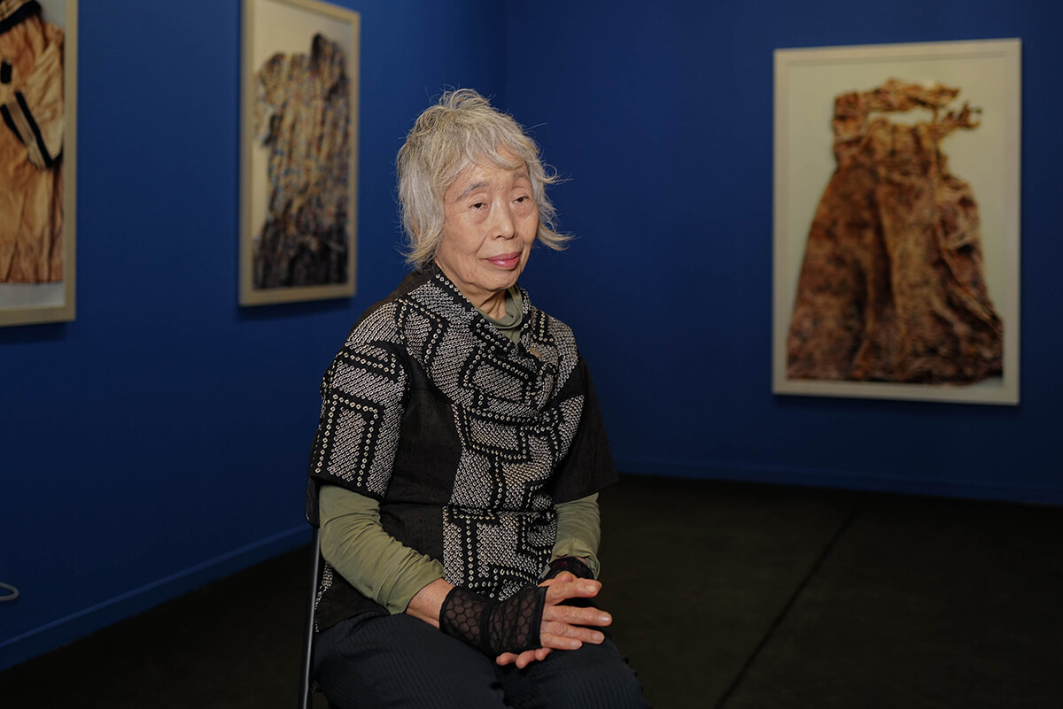 アルルのサル・アンリ=コントで開かれた個展「BELONGINGS」(©Ishiuchi Miyako)でインタビューに答える石内都。©Yusuke Kinaka