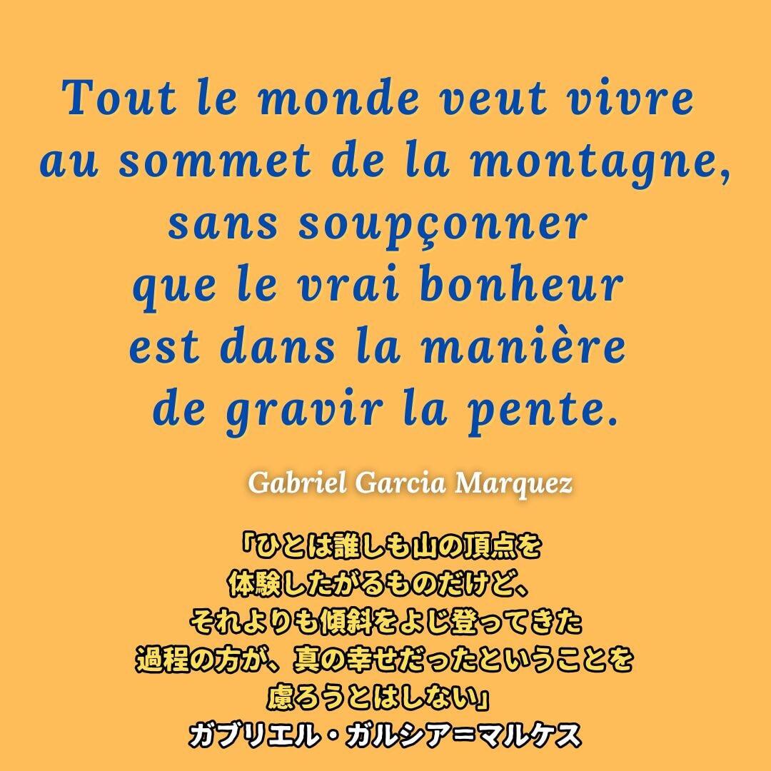 たしかにガルシア=マルケスのいう通り、人はなんとかして頂点に登りつめたいと、必死になってがむしゃらな努力をするけれど、一旦登り詰めたとしても、そこには何もないし、ただ果てしない無の世界があるだけだ、ということらしい。本当の幸せは頂点にはない、と彼はいう。そこに至るまで、夢中で岩場をよじ登っていた過程ほど、どれほど気高く、美しく、満ち足りたものだったか、と。ガルシア=マルケスの言葉を読んでいると、銀でも、銅でもいいではないか。そこに至るまでどれほどの努力をしてきたか、そのことを讃えてあげたい、という気持ちになってくるから不思議だ。