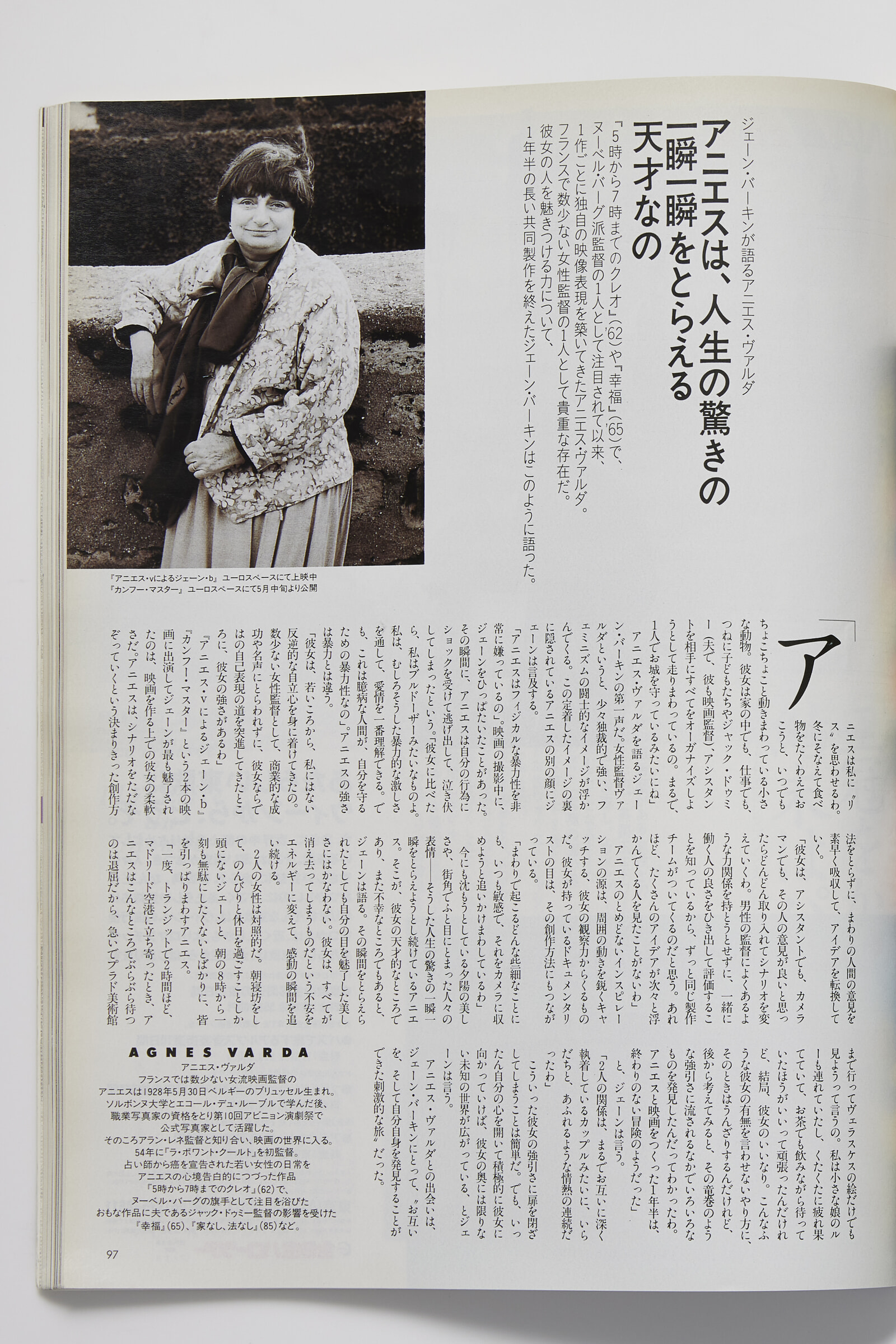1990年の日本公開当時、フィガロジャポンではジェーン・バーキンとアニエス・ヴァルダにインタビューをしていた。創刊2号目の誌面を紹介する。