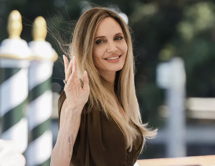 アンジェリーナ・ジョリーのバレイヤージュヘアカラー。(ヴェネツィア、2024年8月29日)