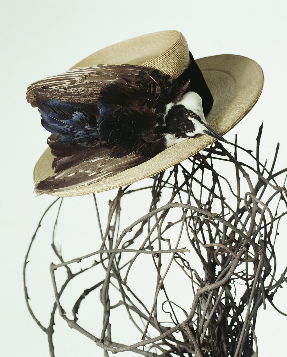 「別種の鳥のパーツを繋げて作られた、この世には存在しないキメラの剝製を美しいと言ってしまうのには躊躇いが生ずるが、この帽子が人目をひくのは理解できてしまう。人の、着飾るという欲望を体現している」(千早)。