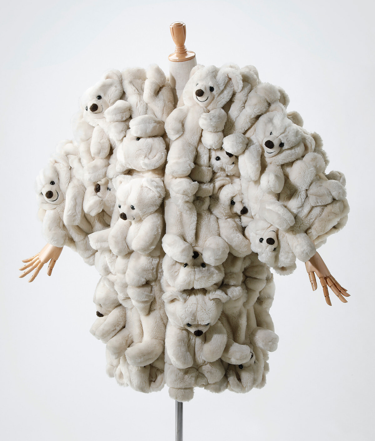 「たとえ偽物でも毛皮をまといたい。フェイクファーが生まれた背景にはそんな人の渇望が存在したのだろうか。偽物ならば、いっそぬいぐるみを。そんな皮肉と可笑しみとひらきなおった可愛らしさを感じさせる」(千早)。