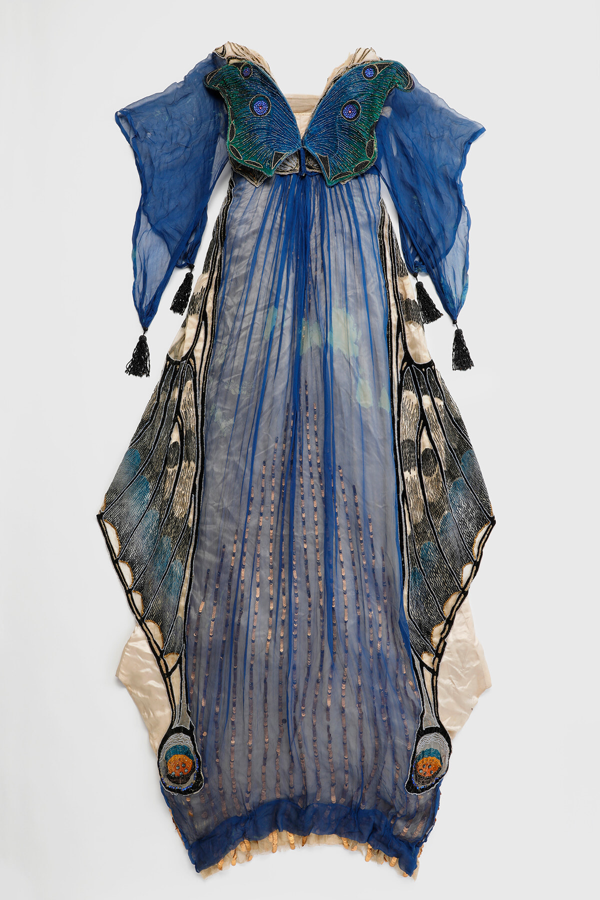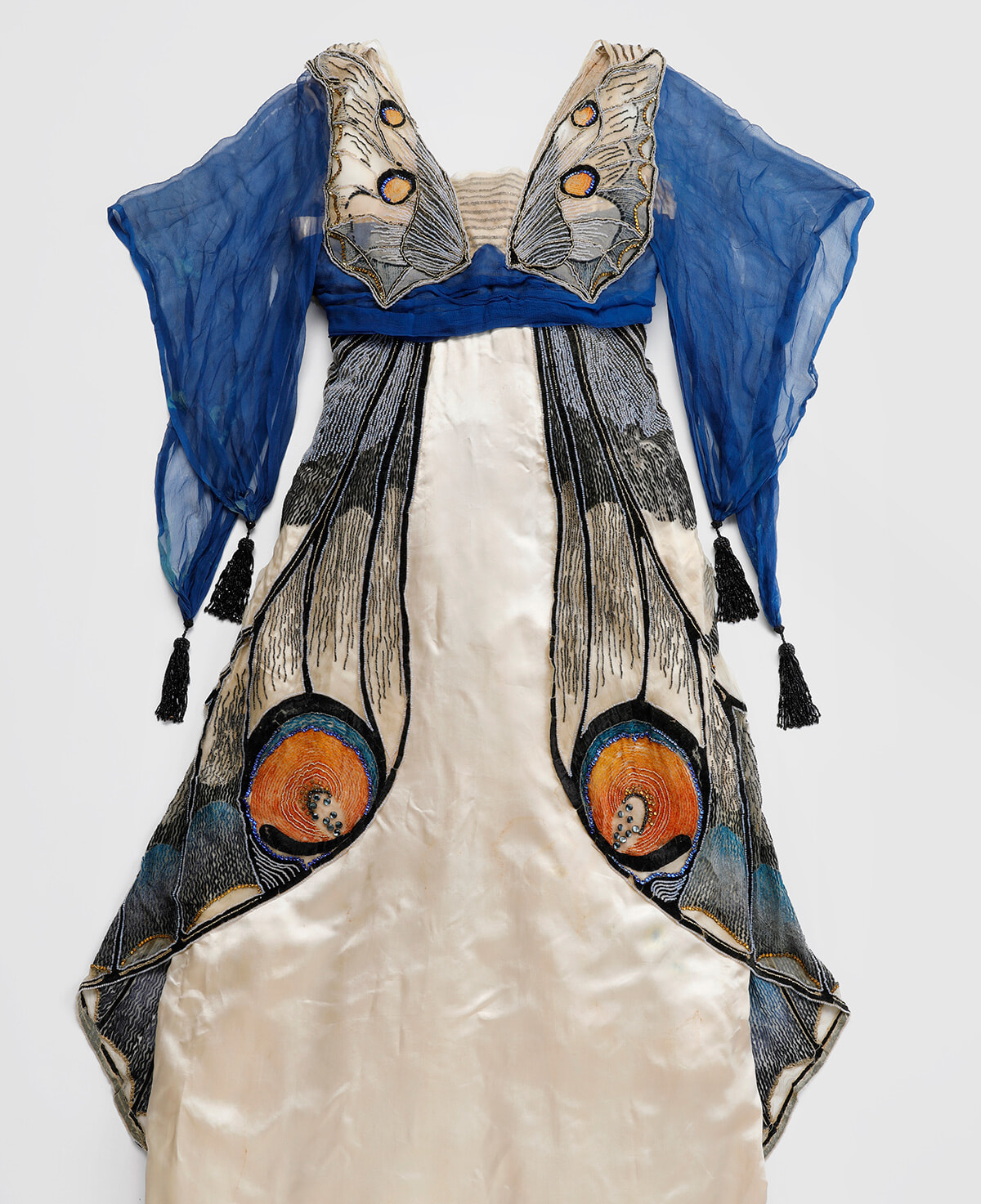 「上流階級の仮装舞踏会用の衣装。お遊びのために作られたドレスの、手縫いのビーズ刺繍の細かさにため息がもれる。人の手によって生まれた幻想的で艶やかな蝶。ウォルトの服からはオートクチュールの豊かさを感じる」(千早)。
