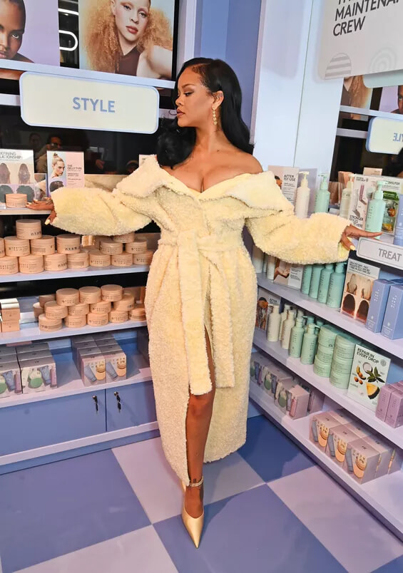 バスローブ姿でシックかつグラマラスに見えるにはどうすれば良い? それを知りたければ、リアーナに尋ねたら良いだろう。歌手の彼女は、9月16日、ロンドン百貨店のセルフリッジで自らのヘアブランド「フェンティ・ヘア」の発売記念イベントに登場した。