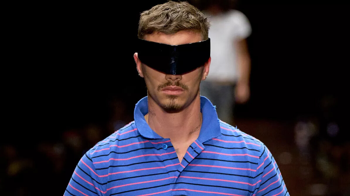 驚くべき決断だが、これが成功しているようだ。22歳のロメオ・ベッカムは、バレンシアガのランウェイで堂々とした姿を見せていた。彼は自信に満ちた足取りで、襟を立てた青とピンクのストライプのポロシャツを着て登場した。ショートスリーブのトップに、腰の位置が低く、ウエスト部分が大きく開いた淡い色のワイドジーンズを合わせ、下腹部を見せるスタイル。足元には、未来的なデザインのオーバーサイズのシルバーのスニーカーを履いていた。アクセサリーとして、右手にはファッションブランドの名前が白い文字で表示されたスマートフォンを持っていた。