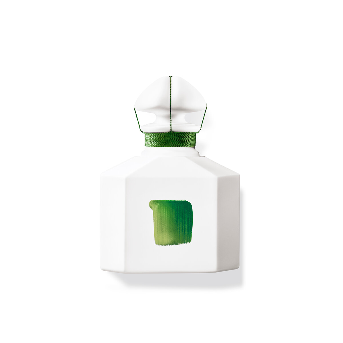 山の蘭のフレッシュさに温かみが漂う穏やかな香り。その香りを包み込むのは、ゲランの伝統的なクアドリローブを踏襲したボトルだ。