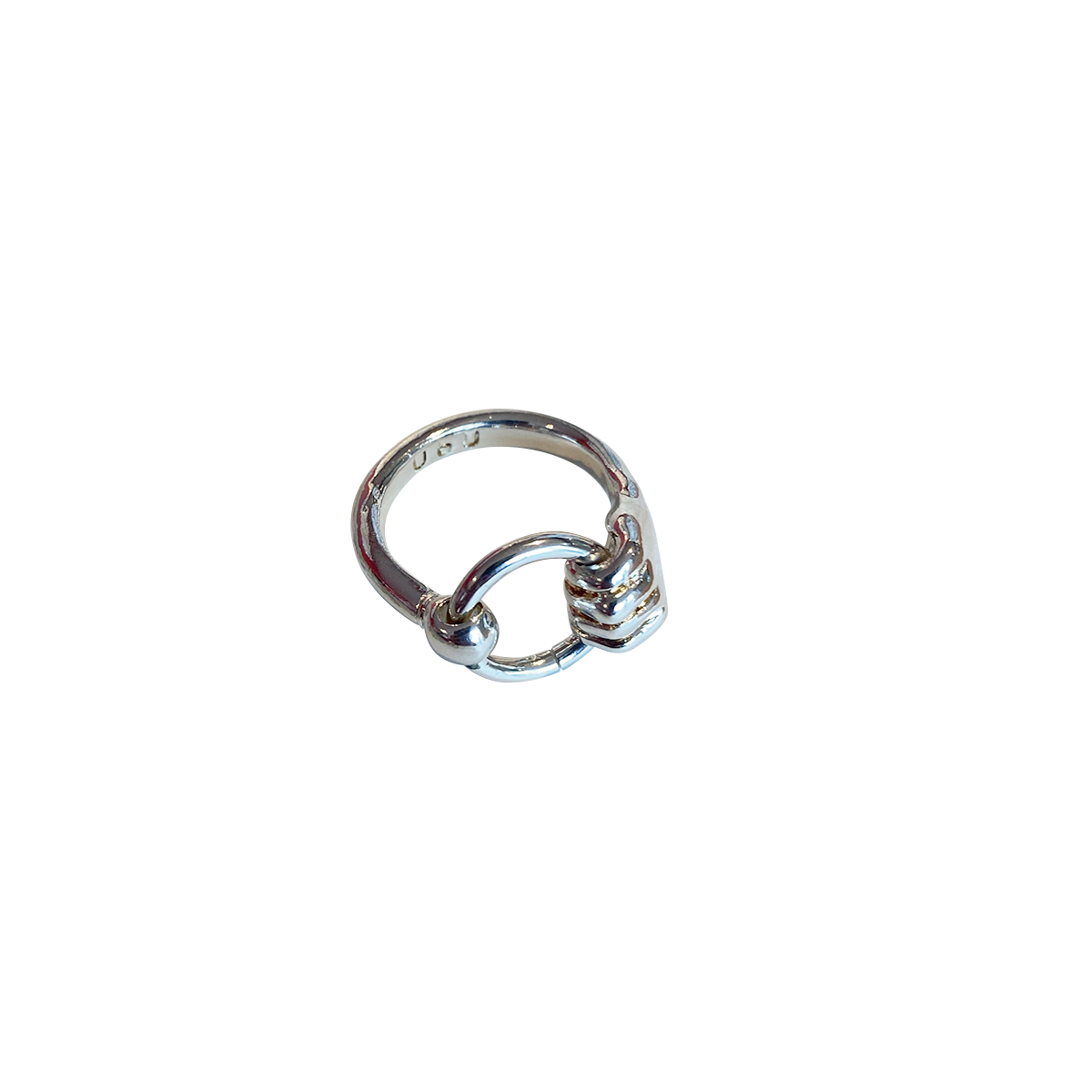マレにアトリエを構えるジュエリーブランド、ウブが制作したリングは、グッチのホースビットコレクションに着想を得たもの。馬具を彷彿とさせるサークルに、ロダンの名作である手の彫刻が付いた唯一無二のデザイン。