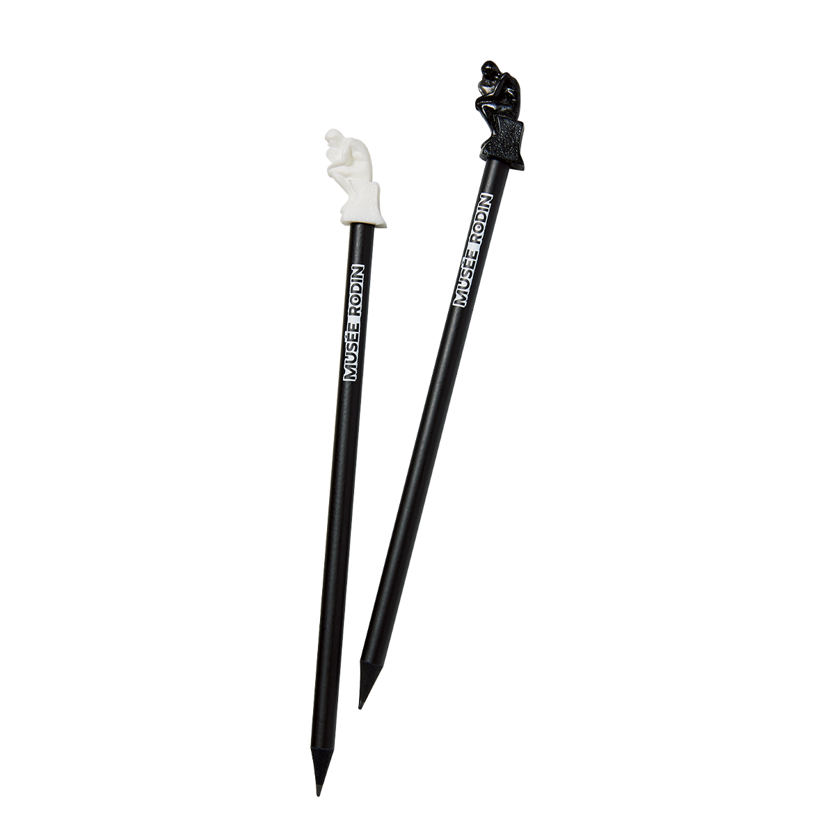ロダンの代表作『考える人』が組み合わせられた鉛筆。黒と白の2色展開のシンプルなデザインでお土産に最適。この鉛筆を使えば、『考える人』のように考える作業もはかどりそう!