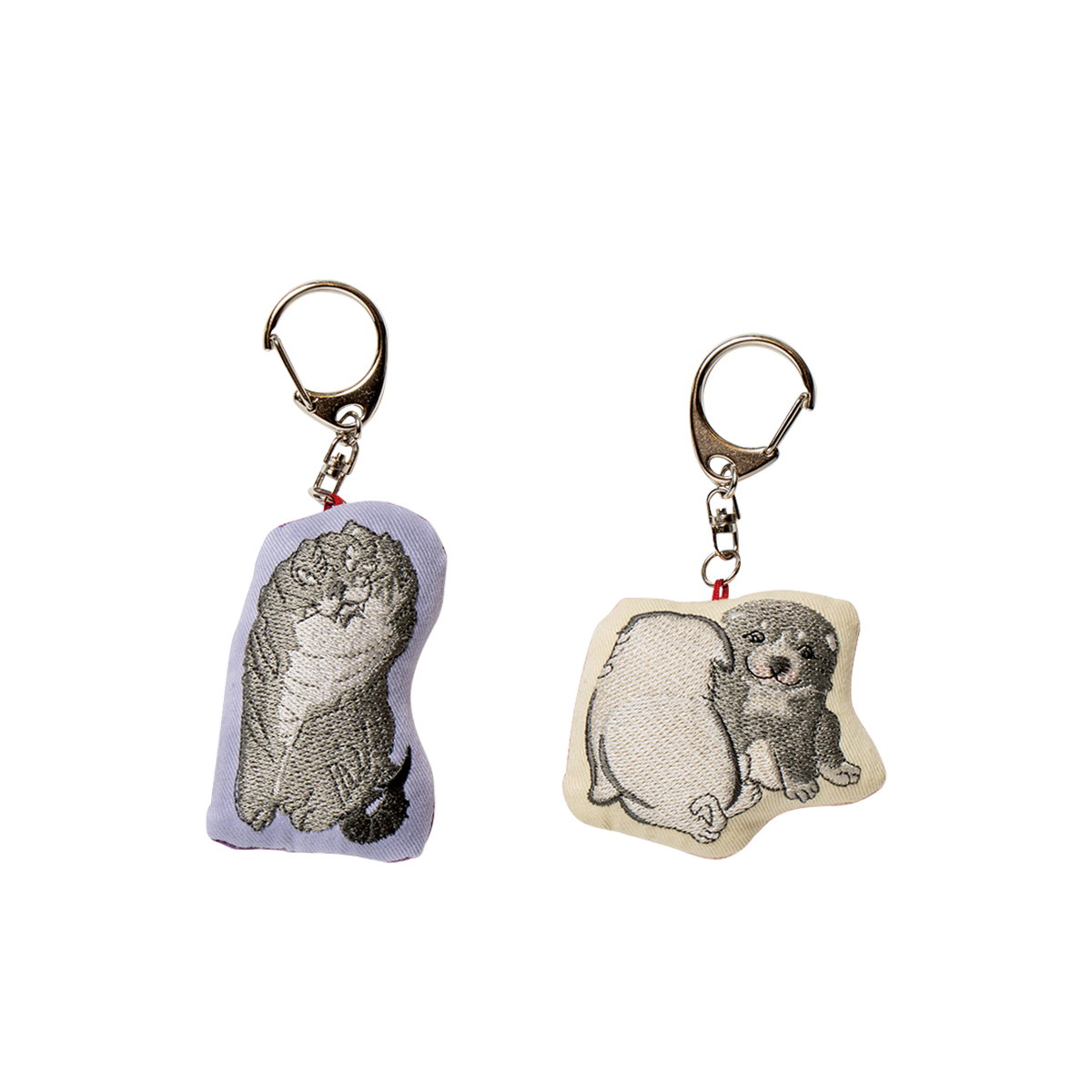 江戸時代中期に活躍した円山応挙が描いた愛らしい仔犬と、応挙の高弟、長沢芦雪による迫力ある虎を刺繍で表現したクッションキーホルダー。