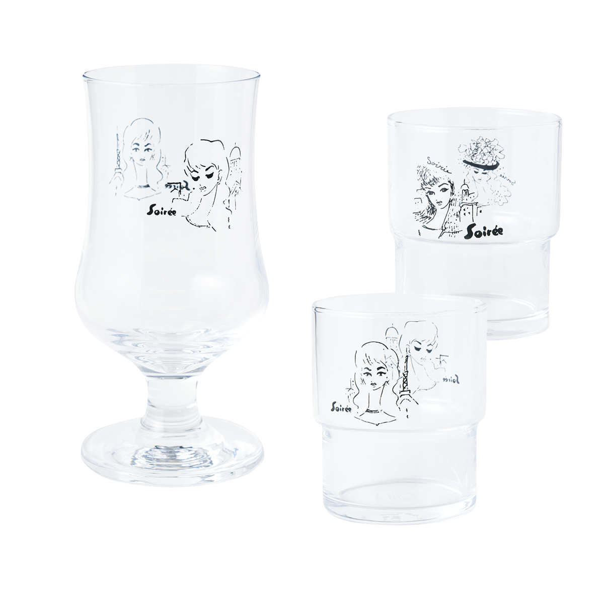 グラス(上左)ゴブレット¥1,320、(上右)グラスセット¥1,540(京都市京セラ美術館 アート レクタングル 京都)