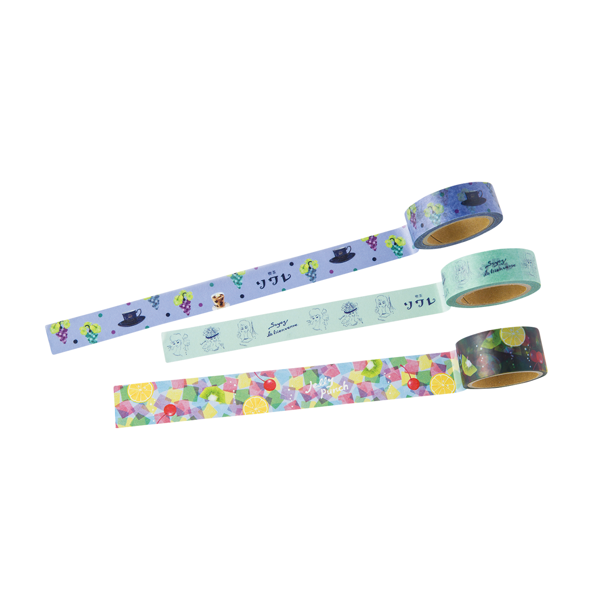 こちらも喫茶ソワレから。同店の青い空間を彷彿とさせるデザインや名物のゼリーポンチのモチーフなど、老舗喫茶店の世界観を味わえる「夢ミル京都喫茶巡りマスキングテープ 喫茶ソワレ」