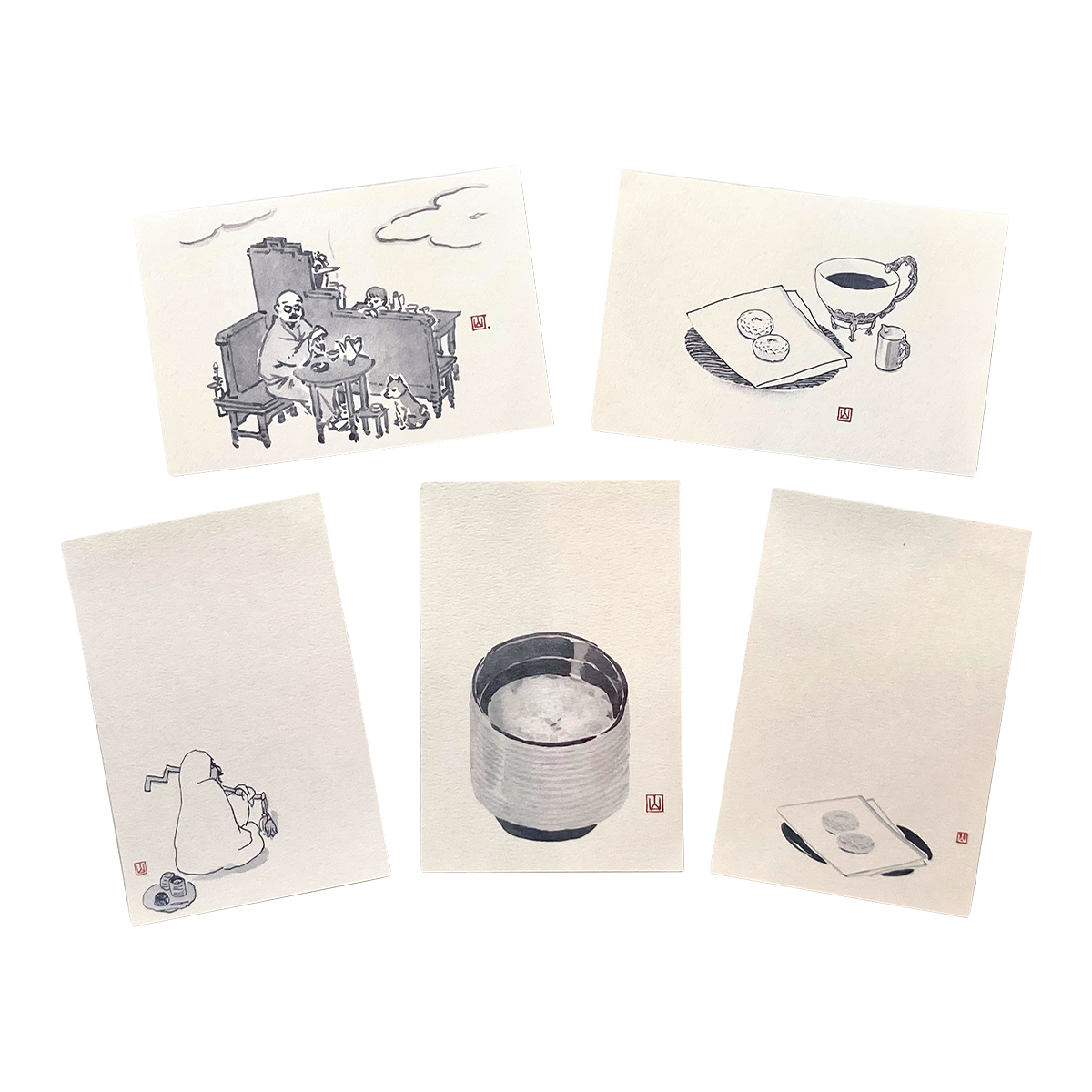 『お菓子とお茶のある風景』5枚入り¥1,000(ゼンビ-鍵善良房-カギゼン アート ミュージアム ミュージアムショップ ジープラス)