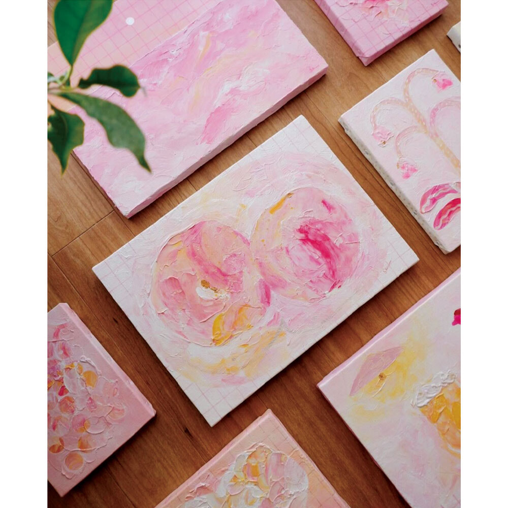 ピンク色の作品が印象的な絵描き兼イラストレーター。「幼少期、女の子らしすぎるという自意識が邪魔をしてピンクが好きだと言えず、青や紫を選ぶ子だった」という彼女は、大人になりあらためてピンクと向き合ったという。