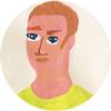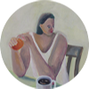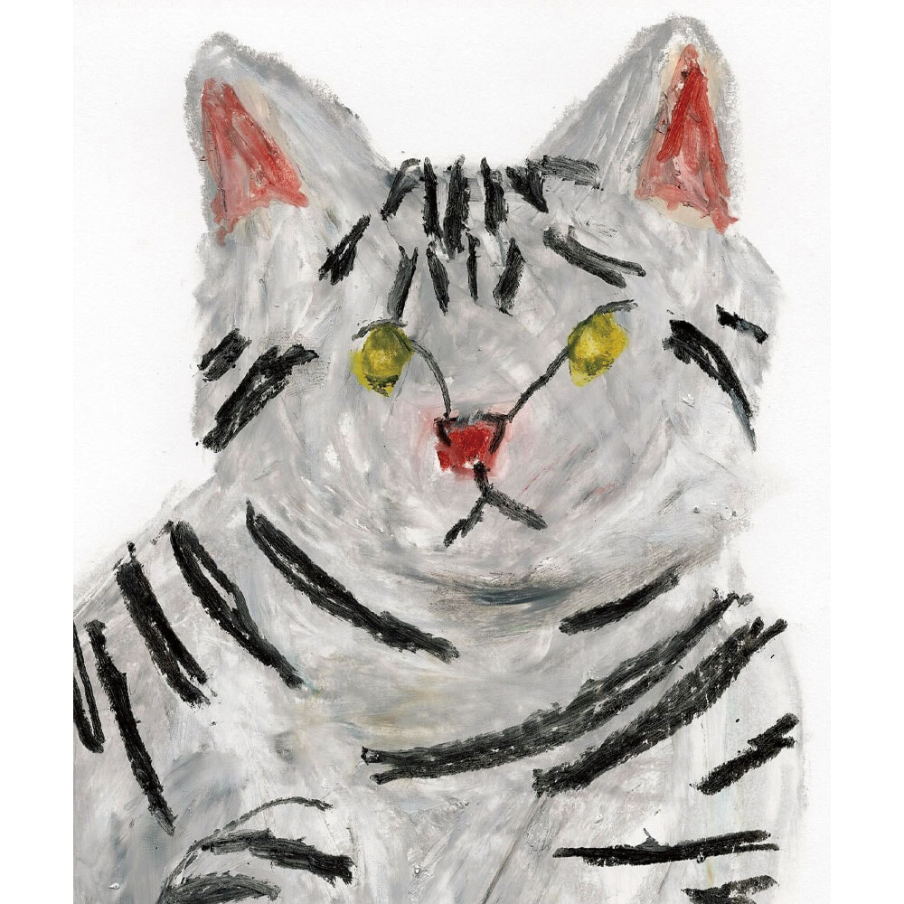ユーモラスな人物画から動物や植物まで、描くモチーフはさまざま。「特別ではないが忘れたくない温かい瞬間」、「ちょっと変なもの」、「美しくなくても可愛いもの」、「明るい気持ち」と「暗い気持ち」をアクリル画で表現する。