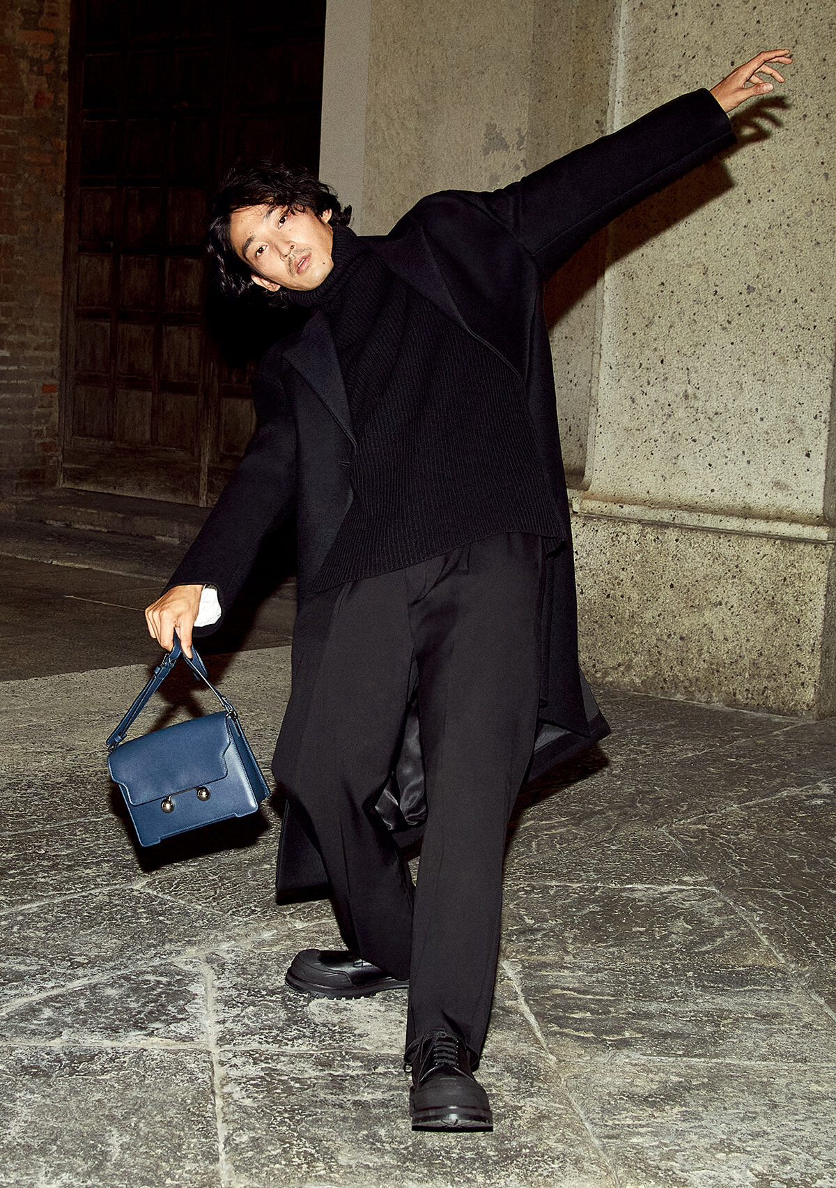 モデル出身の恵まれた頭身、日本人離れしたクールなルックス、時折覗かせる人懐っこい笑顔。天性の人たらしで、相手の懐にスッと入り込む。日本中の男が憧れる男の素顔をミラノで捉えた。